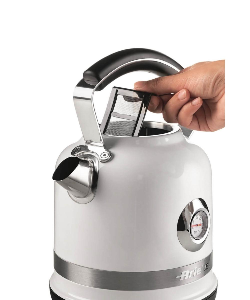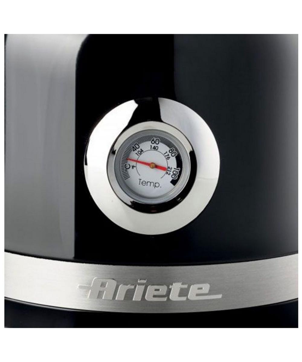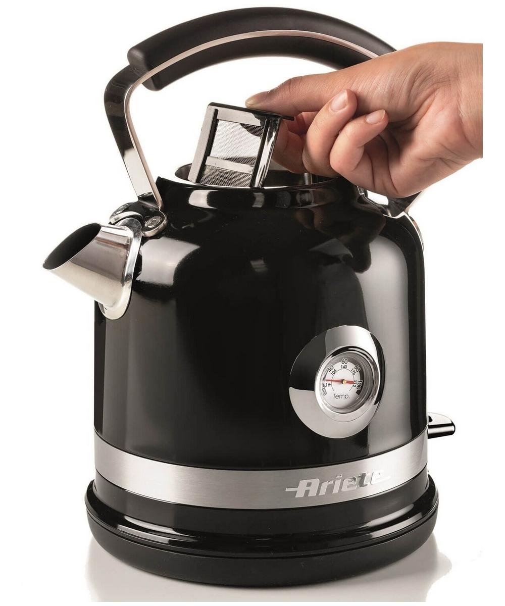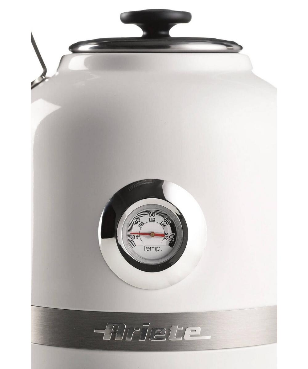 Корпус из нержавеющей стали придает ему прочность и может похвастаться видимым термометром, который показывает температуру воды, и съемным и моющимся фильтром. Кроме того, благодаря функции автоматического отключения, пока он кипит, вы можете позволить себе расслабиться в полной безопасности и с оттенком истинного стиля. Итальянская марка Ariete гарантирует высокое качество продукции по европейским стандартам.