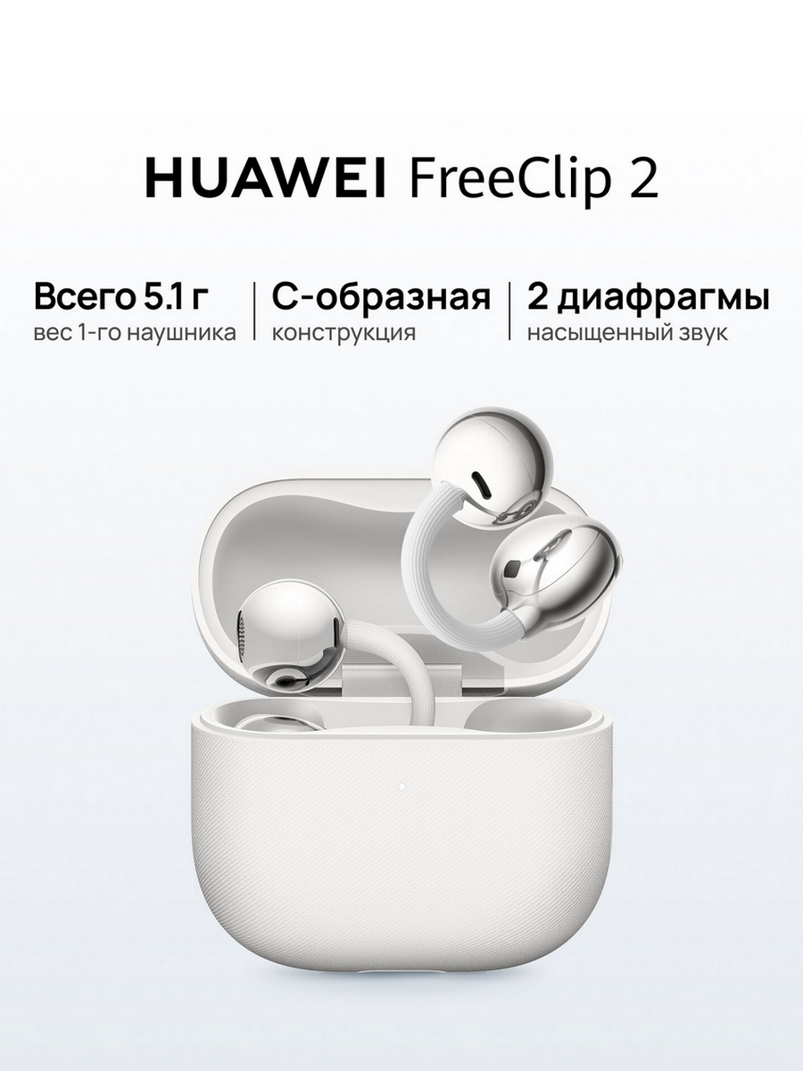 Беспроводные Bluetooth наушники HUAWEI FreeClip 2 - идеальный выбор для тех, кто ценит качественный звук, комфорт и свободу движения. Наушники подходят для телефона, ноутбука, планшета и других устройств с поддержкой Bluetooth.