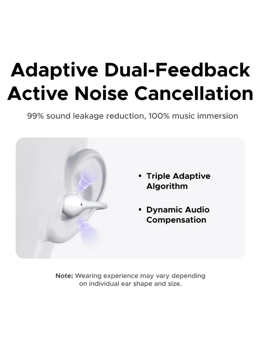 Активное шумоподавление (ANC) — эффективная блокировка окружающего шума для погружения в музыку.