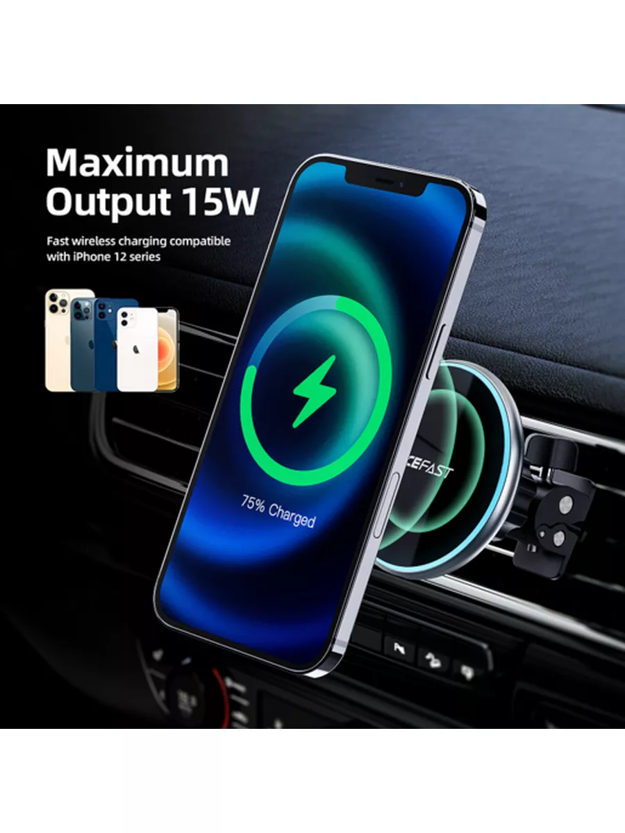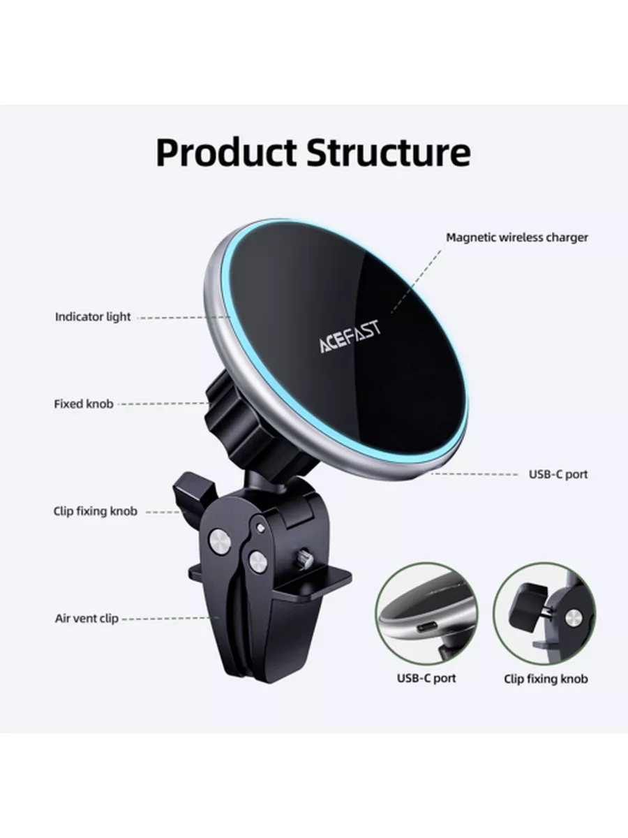 Автомобильный держатель Acefast D3 Magnetic Wireless Charging Car Holder Silver оснащен зарядным модулем, обеспечивающим быстрое восполнение ресурса батареи любых моделей смартфонов. Он отличается максимальным выходным напряжением 15 Вт.