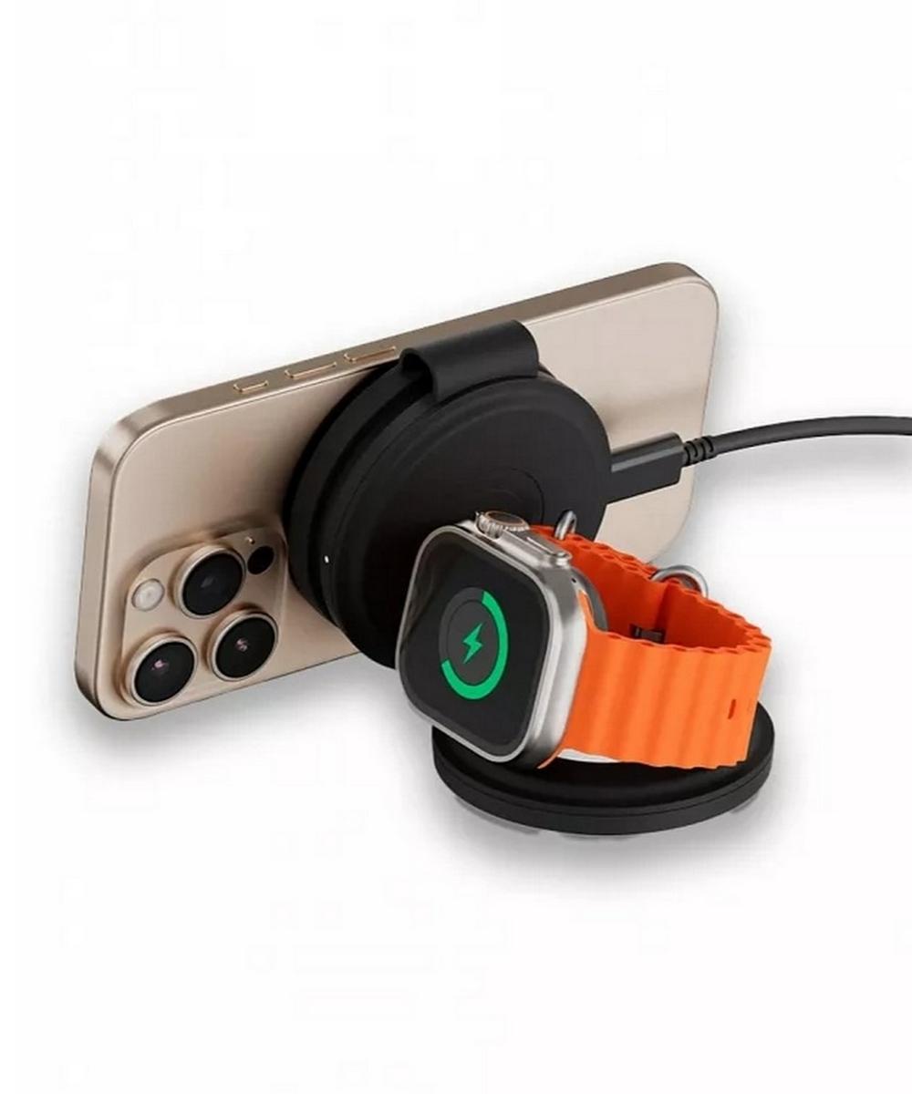 Это универсальное зарядное устройство объединяет в себе три функции и позволяет одновременно заряжать iPhone, Apple Watch и AirPods, избавляя от лишних кабелей и блоков питания. Благодаря поддержке новейшего стандарта Qi2 оно обеспечивает быструю и стабильную работу: до 15 Вт для iPhone, 5 Вт для Apple Watch и 5 Вт для наушников.
