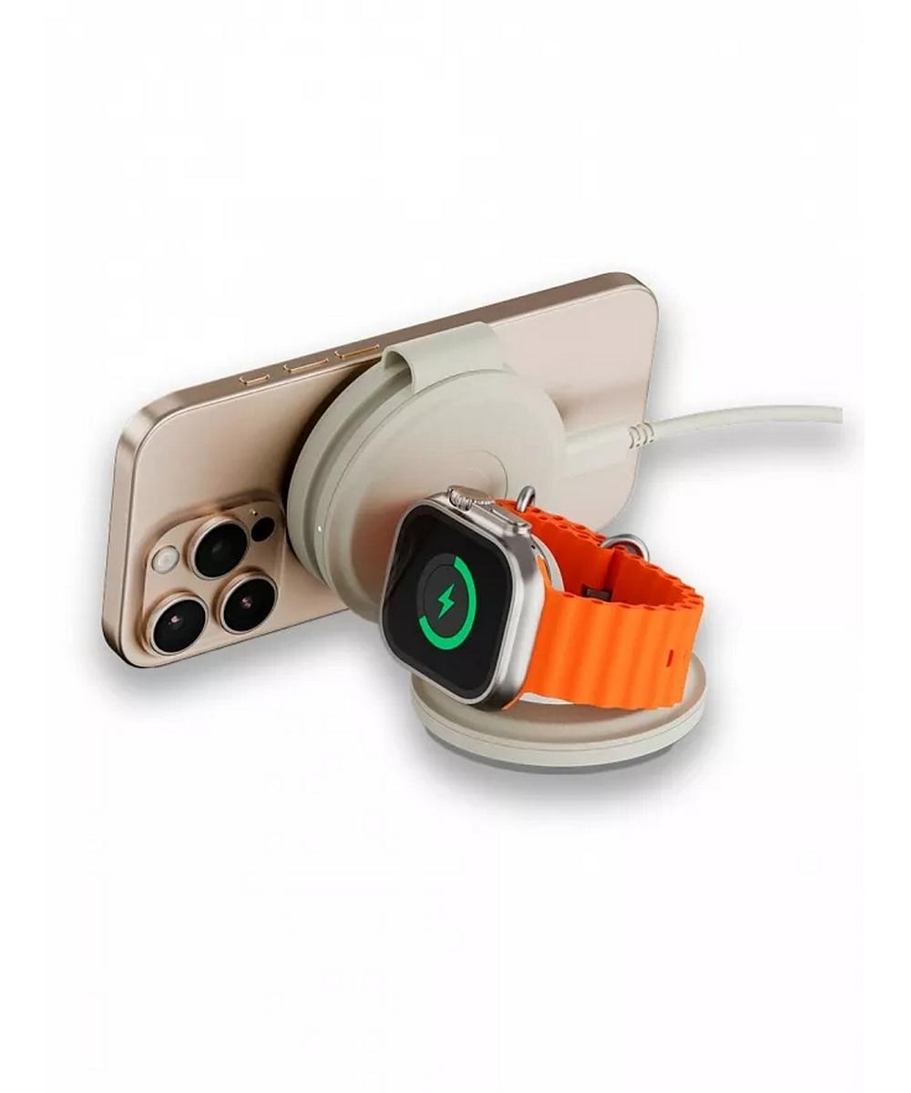 Это универсальное зарядное устройство объединяет в себе три функции и позволяет одновременно заряжать iPhone, Apple Watch и AirPods, избавляя от лишних кабелей и блоков питания. Благодаря поддержке новейшего стандарта Qi2 оно обеспечивает быструю и стабильную работу: до 15 Вт для iPhone, 5 Вт для Apple Watch и 5 Вт для наушников.