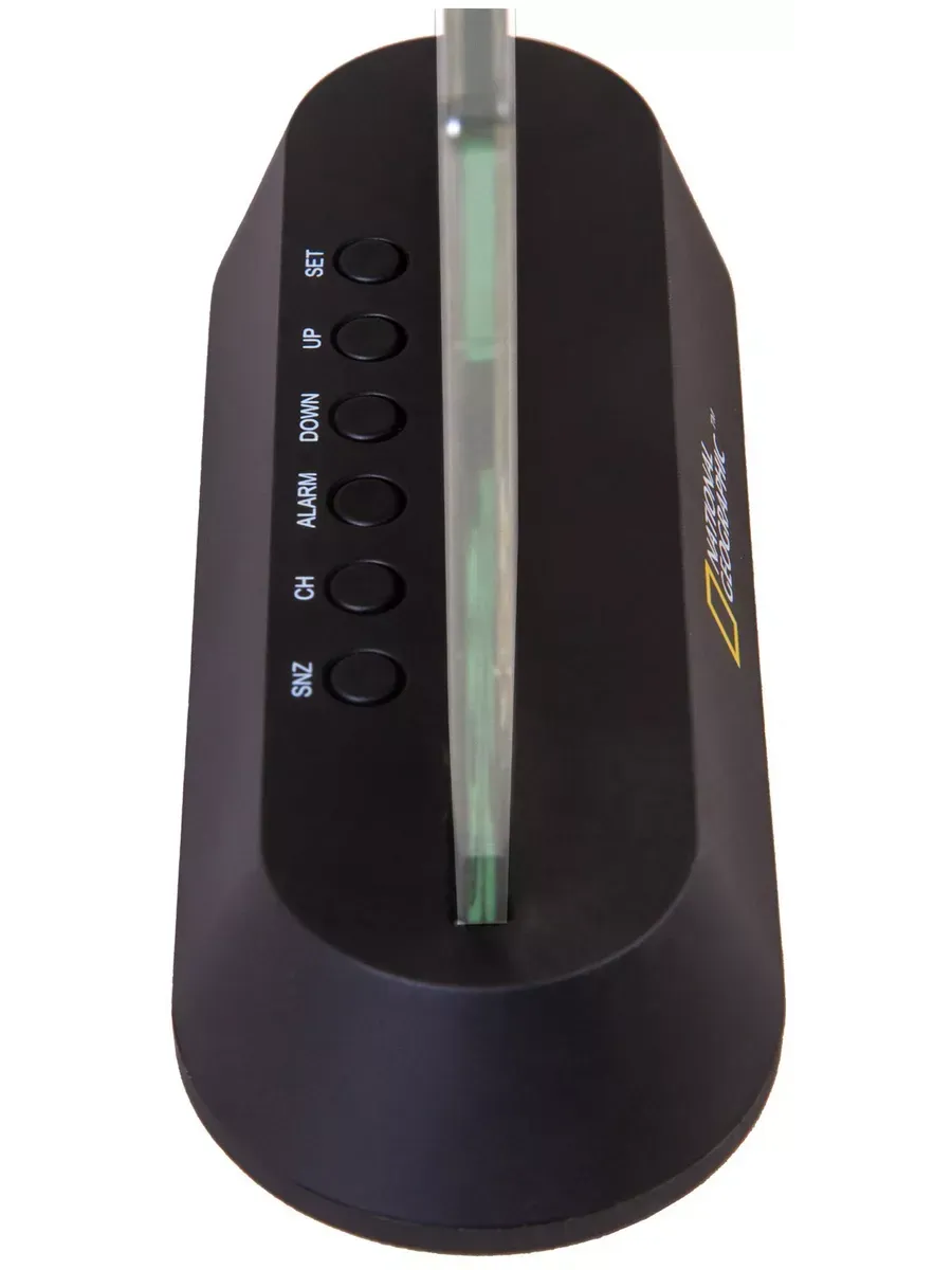 Bresser National Geographic в прозрачном корпусе настольная метеостанция, которая станет украшением дома или офиса. Ее можно поставить на стол, тумбочку или полку. Наружный датчик при этом можно разместить за окном на расстоянии до 30 метров от основного модуля. Метеостанция показывает время, составляет прогноз погоды на ближайшие 12 часов, измеряет температуру внутри и снаружи помещения, а также влажность воздуха. Вся информация выводится на встроенный экран.