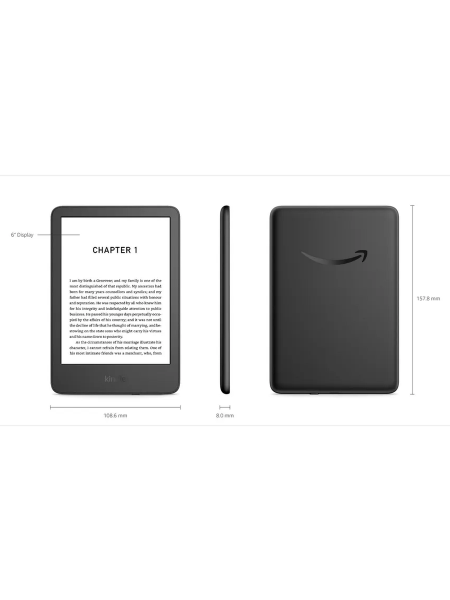 Новый Amazon Kindle 11th Gen 2024 года — Самый лёгкий и компактный Kindle, теперь с улучшенным экраном и более быстрым перелистыванием страниц. Подсветка экрана стала на 25% ярче на максимальном уровне и теперь сравнима по яркости с Kindle Paperwhite. Благодаря регулируемой передней подсветке и тёмному режиму, вы сможете читать без усилий в любое время суток на 6-дюймовом экране без бликов с разрешением 300 ppi.