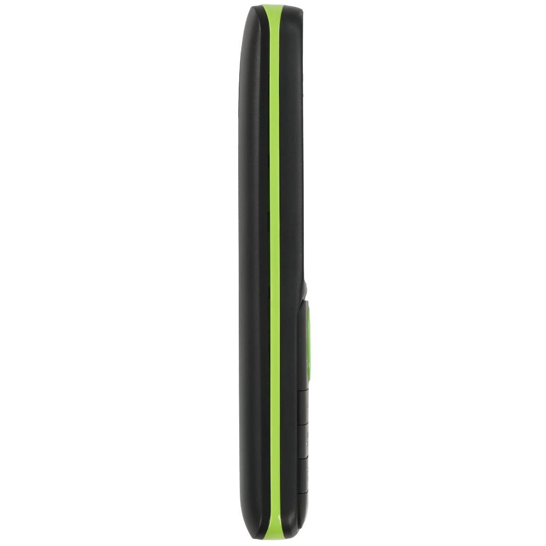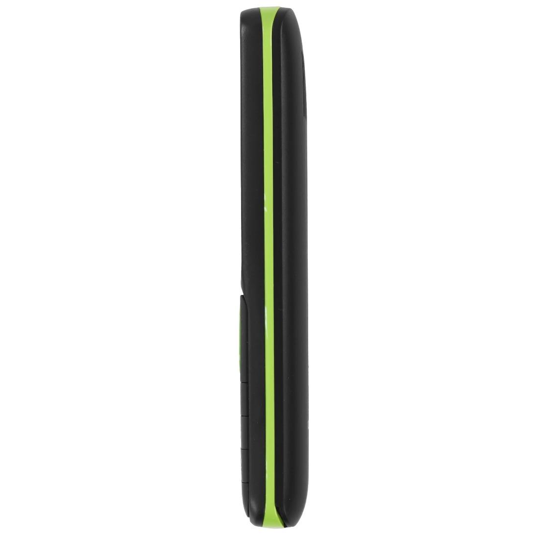 Телефон выполнен из качественного пластика в классическом черном цвете с ярко-зеленой окантовкой центральной кнопки-курсора и корпуса устройства.