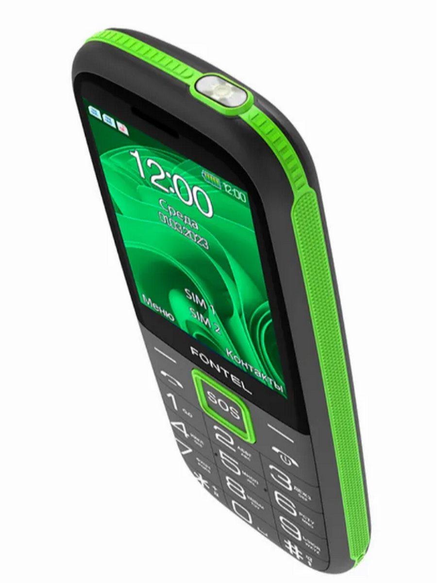 Модель не перегружена избыточным функционалом, при этом обладает полным набором самых востребованных опций: FM-радио, диктофон, фото и видеокамера, разъем для подключения наушников и Bluetooth для подключения беспроводной гарнитуры, поддержка двух SIM-карт и карты памяти microSD. А яркий светодиодный фонарик можно включить всего в одно касание при помощи переключателя на торце корпуса