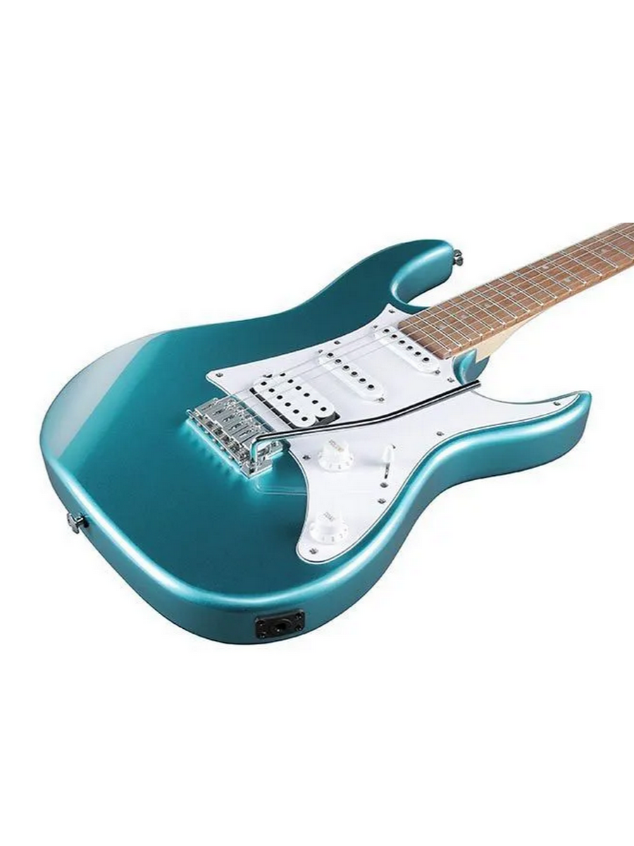 Ibanez GIO GRX40 Metallic Light Blue — шестиструнная электрогитара с универсальными звуковыми характеристиками, элегантным дизайном с широкими вырезами, предназначенная как для начинающих гитаристов, так и для более опытных. Корпус изготовлен из тополя, имеет сбалансированный звук с насыщенным, плотным и естественным тоном. Гриф из клена на болтах с накладкой из ятоба имеет плоский профиль GRX, плотно лежит в руке, способствует точной и быстрой игре. Универсальный набор звукоснимателей Infinity с мощным хамбакером и двумя классическими синглами, пятипозиционный переключатель, регуляторы громкости и тона обеспечивают широкий звуковой диапазон для любого музыкального стиля. Надежный тремоло-бридж T106 и литые колки Ibanez позволяют сохранять стабильность настройки.