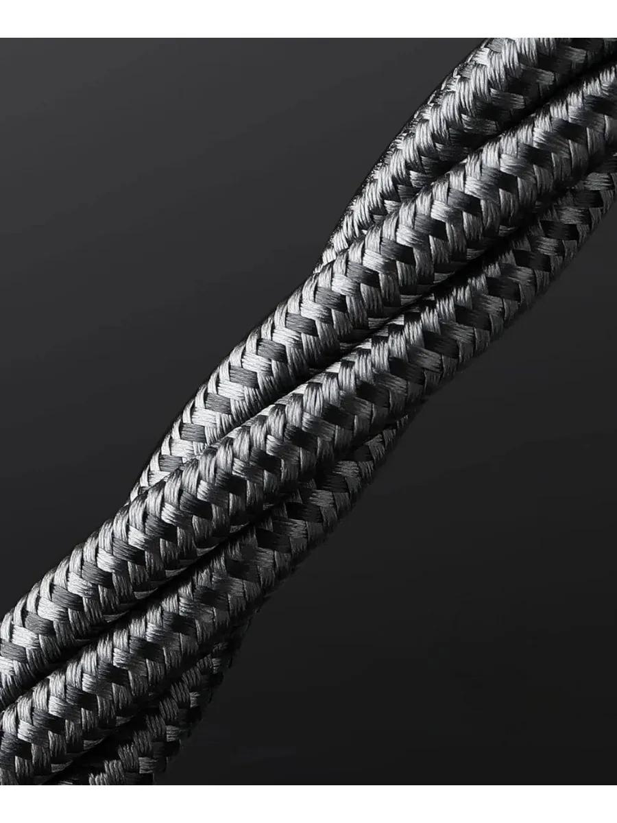 Прочный нейлоновый плетеный кабель не только не спутывается, но и достаточно гибкий, чтобы его можно было свернуть и положить в сумку. Самая хрупкая часть - соединение кабеля и вилки - было усилено и проверено на прочность. Выдерживает более 12 000 изгибов.