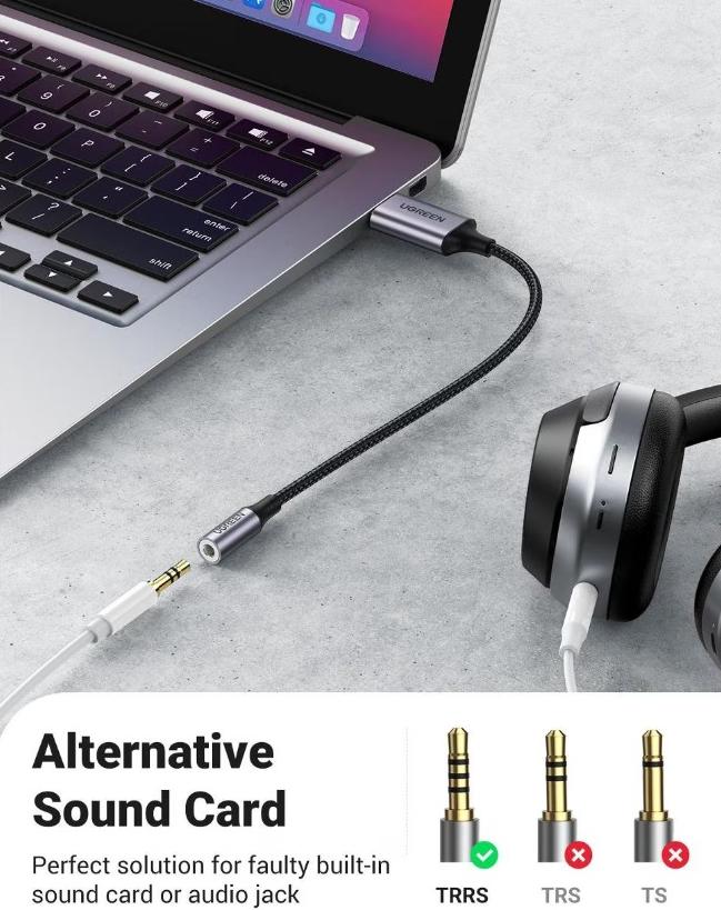 Адаптер UGREEN CM477 Audio Adapter - это удобный переходник, который позволяет подключить наушники или аудиоустройства с разъемом 3.5 мм к устройствам с разъемом USB 2.0.
