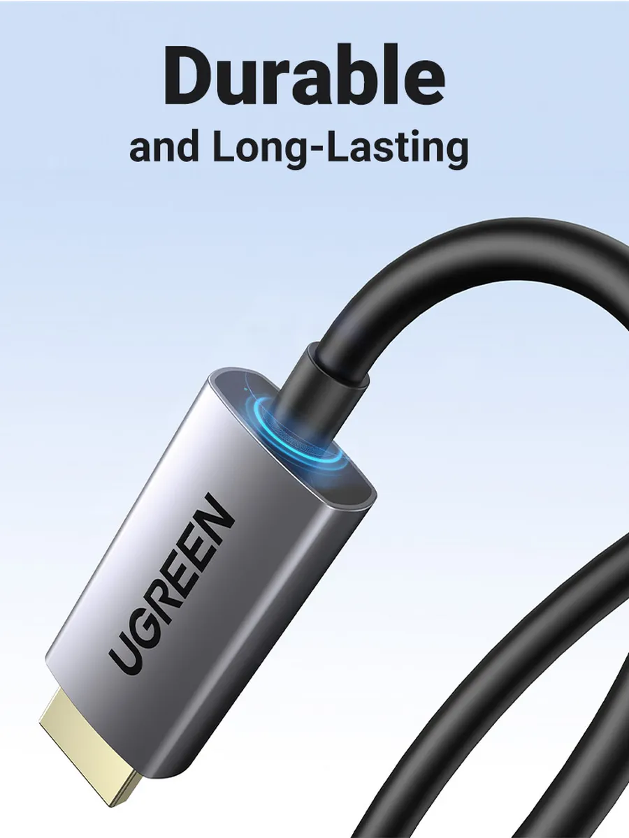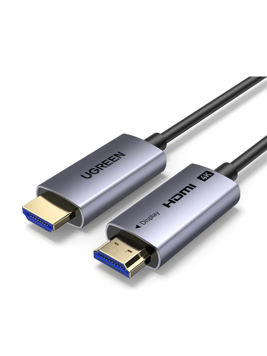Кабель UGREEN HD178 HDMI 4K Fiber Optic — это современное решение для передачи высококачественного аудио и видео сигнала на большие расстояния без потерь. Он выполнен по оптоволоконной технологии (AOC), благодаря чему сигнал передаётся в виде световых импульсов, что исключает помехи и затухание, характерные для обычных медных кабелей.