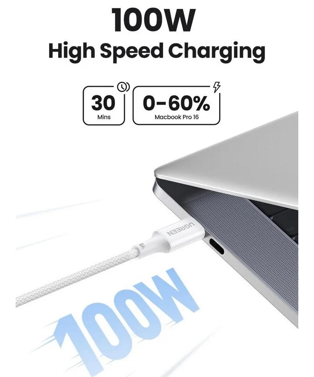 Кабель UGREEN L502 (35221) USB-C - PD - 5A Max - 1м белый