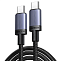 Кабель оснащен разъемами USB-C на обоих концах, что позволяет подключать его к широкому спектру устройств, включая смартфоны, планшеты и ноутбуки.