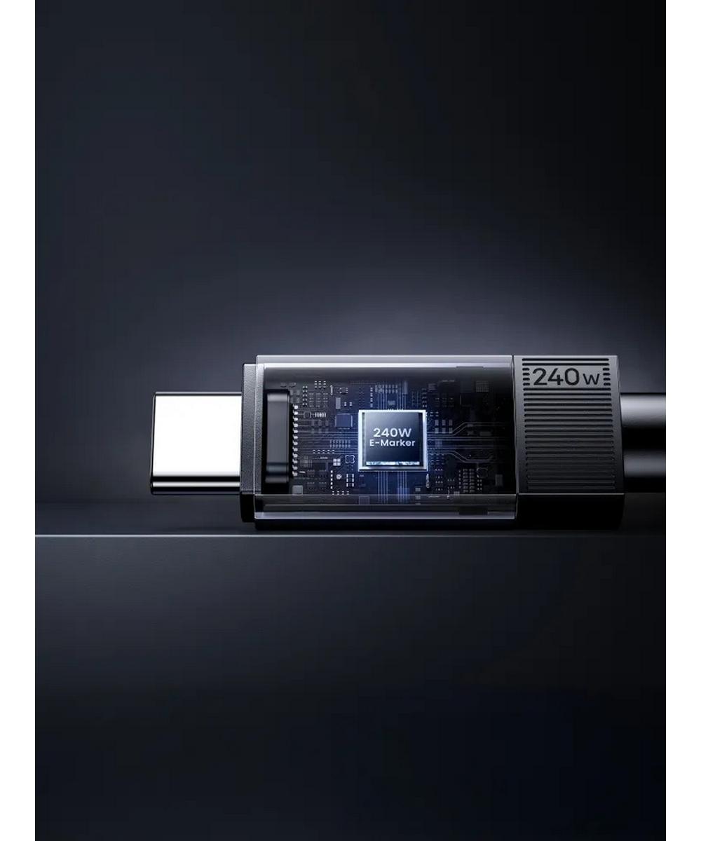 Кабель поддерживает мощность до 240 Вт, благодаря чему обеспечивается максимально быстрая зарядка всех подключённых устройств, что позволяет существенно сократить время ожидания готовности ваших гаджетов к работе