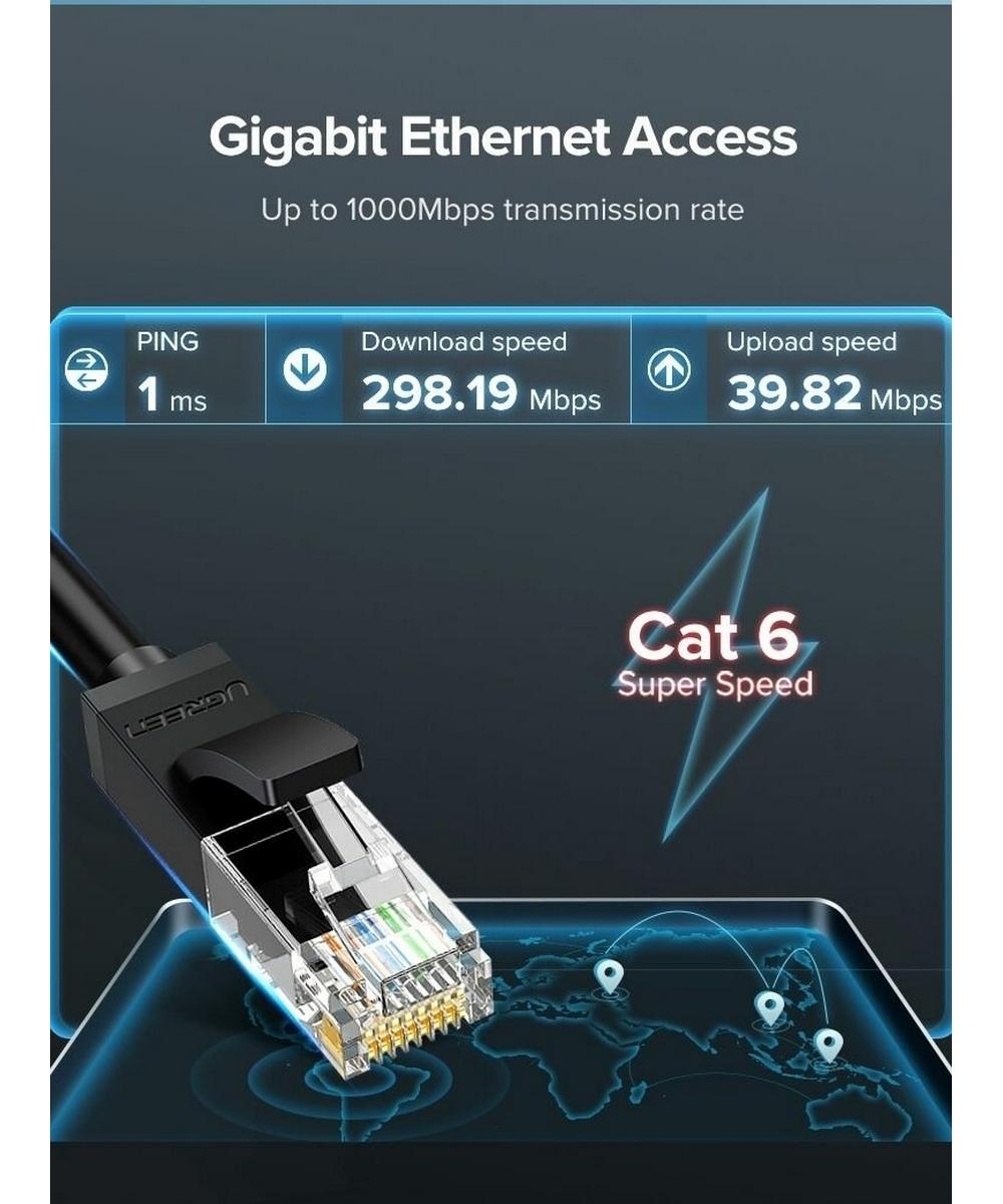 Кабель UGREEN NW102 обеспечивает скорость передачи данных до 1000Mbps, что позволяет передавать большие объемы данных без задержек и потери качества.