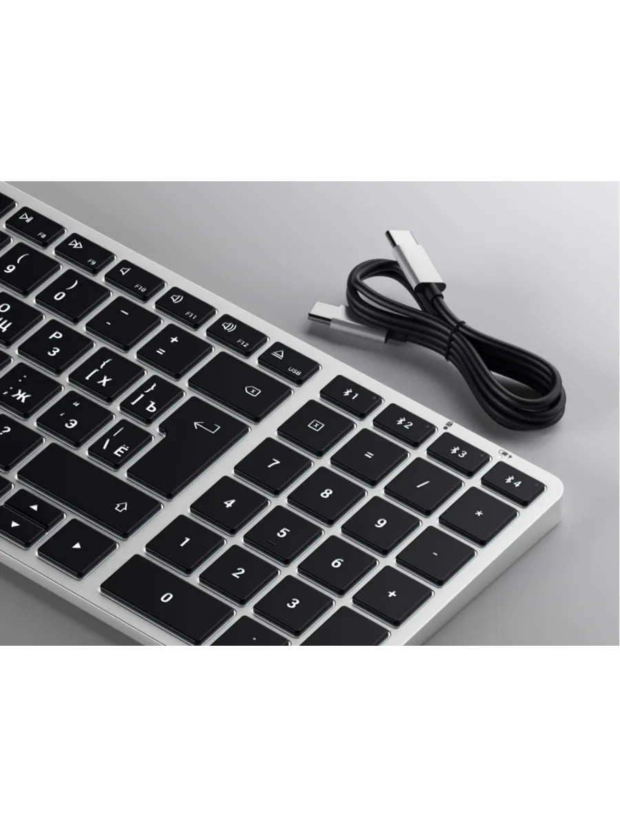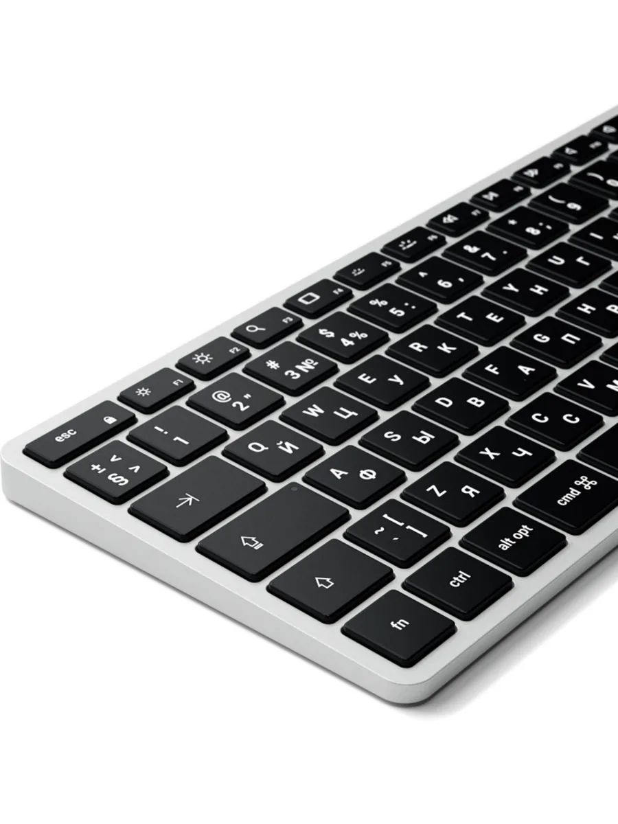 Беспроводная клавиатура Satechi Slim X2 Bluetooth Keyboard популярна среди пользователей. Раскладка клавиатуры — английская/русская. К услугам пользователя выделенный блок цифровых клавиш. Белая подсветка не только помогает с комфортом использовать клавиатуру вне зависимости от условий освещения, но и подчеркивает стильный дизайн.