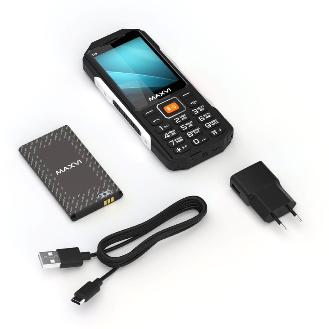 Мобильный телефон с диагональю экрана 2.8”, усиленными боковыми металлическими вставками и ёмким аккумулятором 2000 mAh. Maxvi T19 оснащён функцией Powerbank, позволяющей оказать экстренную энергетическую помощь другим гаджетам. Данный аппарат разработан с учётом требований 76-ФЗ для военнослужащих ВС РФ (отсутствие доступа в Интернет, дополнительного флеш-накопителя, фотокамеры, диктофона, Bluetooth, MMS).