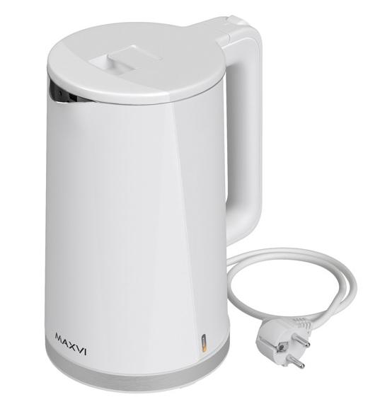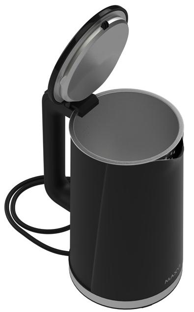 Корпус элегантного электрочайника MAXVI KE1761D изготовлен из экологически чистого пластика с металлической колбой внутри. Благодаря колбе создается эффект термоса: вода быстро нагревается и долго сохраняет температуру. За счет воздушного пространства между металлической колбой и внешним пластиковым корпусом, стенки чайника сильно не нагреваются.
