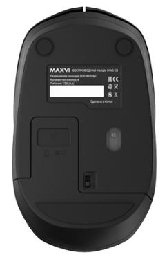 Беспроводная мышь Maxvi MWS-03 имеет 2 основные кнопки, колесо прокрутки с функцией нажатия и дополнительную кнопку dpi, которая позволяет переключать режим работы чувствительности сенсора.