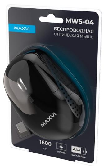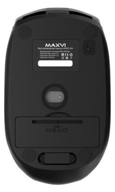 Беспроводная мышь Maxvi MWS-04 имеет 2 основные кнопки, колесо прокрутки с функцией нажатия и дополнительную кнопку dpi, которая позволяет переключать режим работы чувствительности сенсора.