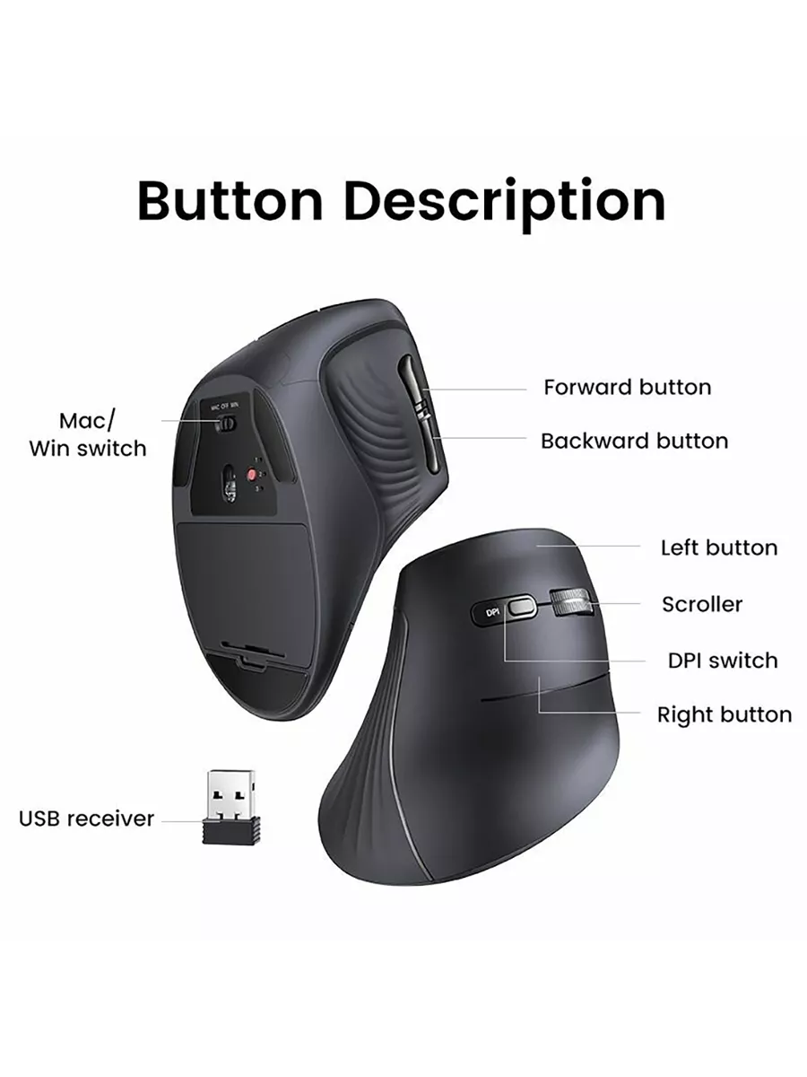 Представляем вам беспроводную компьютерную мышь UGREEN MU008 Wireless Vertical Mouse в стильном чёрном цвете. Эта беспроводная мышка идеально подойдет для использования с ноутбуками и персональными компьютерами, обеспечивая высокий уровень комфорта и функциональности.