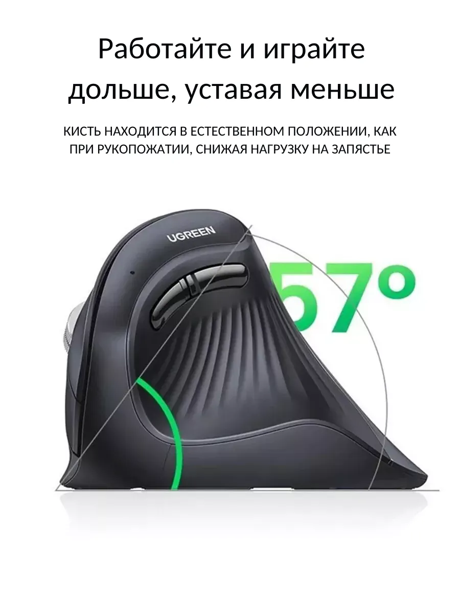 Модель обладает вертикальной эргономичной формой, что способствует правильному положению кисти и уменьшает нагрузку на запястье, особенно при длительном использовании. Благодаря беспроводному соединению вы сможете свободно двигаться без привязки к кабелям, что делает её отличным выбором для работы и игр.