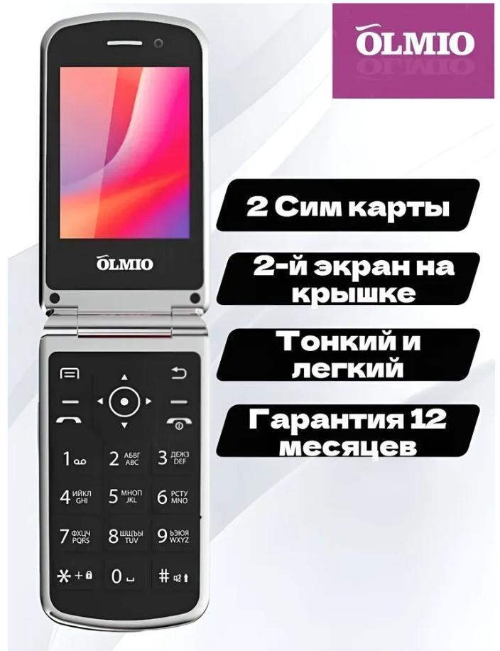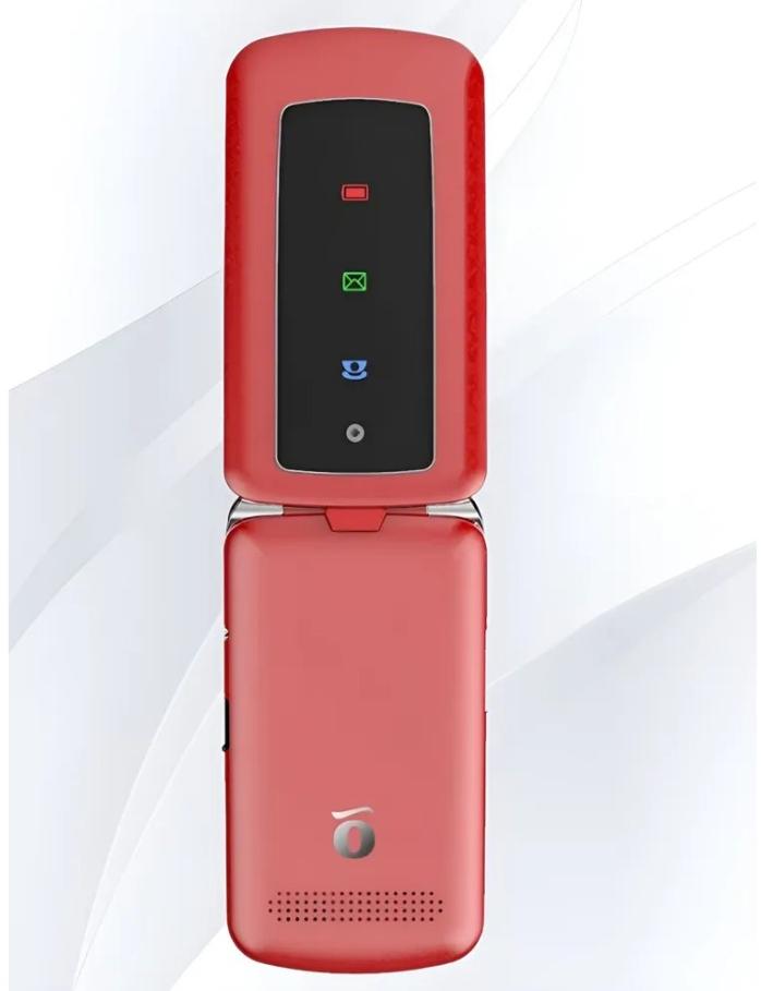 Экран телефона-раскладушки Olmio F28 цветной и большой: на нем хорошо читается текст, видны значки приложений, уровень сигнала и заряда батареи.