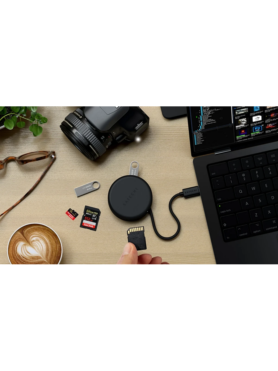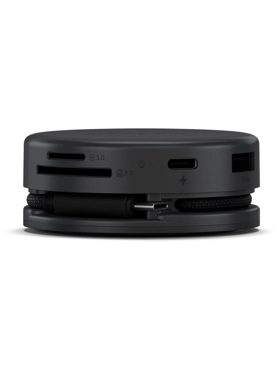 Эстетика фирменного дизайна Satechi передана в темном металлическом корпусе и плавных линиях, а оплетка кабеля USB-C позволяет аккуратно обмотать его вокруг корпуса, исключая спутывание. Основные порты — HDMI 4K/60 Гц, два USB-A, кардридеры SD и microSD, Gigabit Ethernet и USB-C Power Delivery до 100 Вт — обеспечивают возможность подключить монитор, выгружать фото с камеры, подключить периферию и поддерживать заряд ноутбука даже при активной работе.