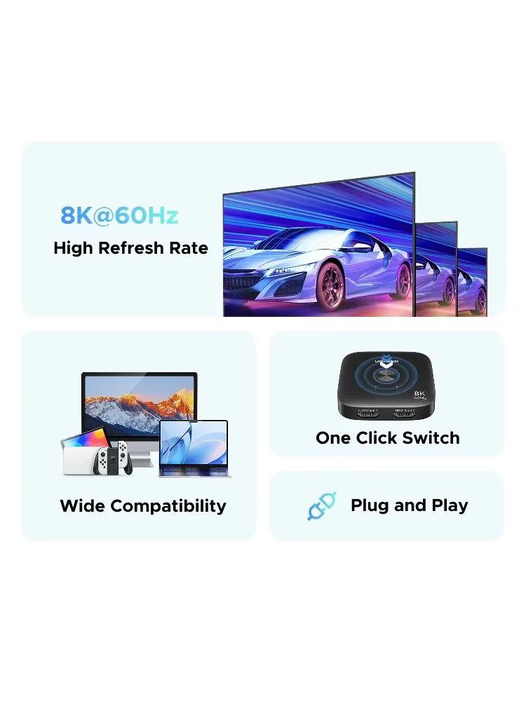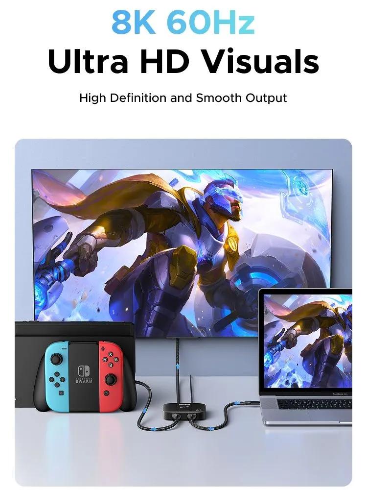 Переключатель UGREEN AW700 (65877) 8K@60Hz HDMI 2.1 Switch 2 In 1 Out