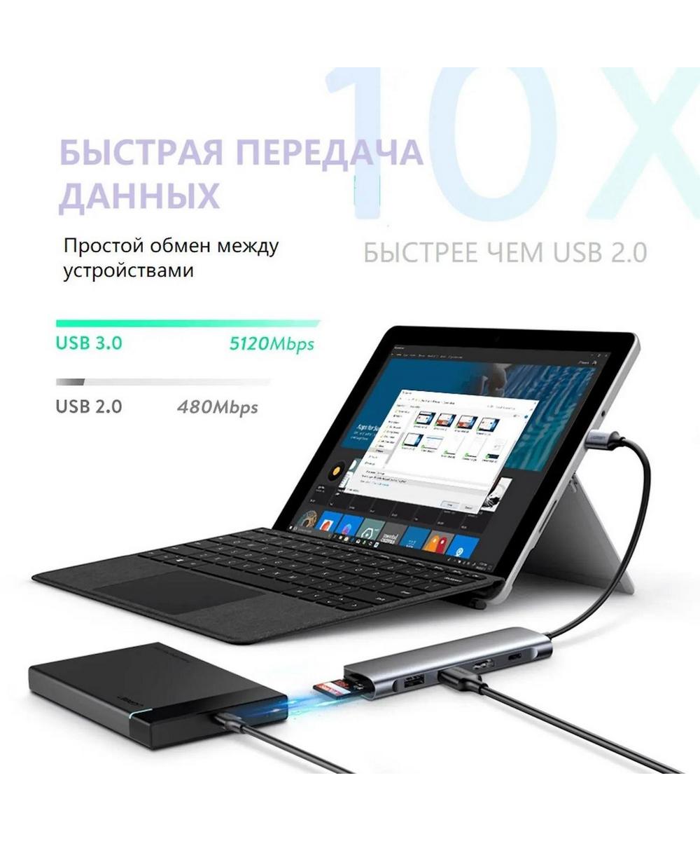3 порта USB 3.0 поддерживают скорость передачи данных до 5 Гбит / с, подключитесь к смартфону, планшету и жесткому диску для легкой передачи данных.