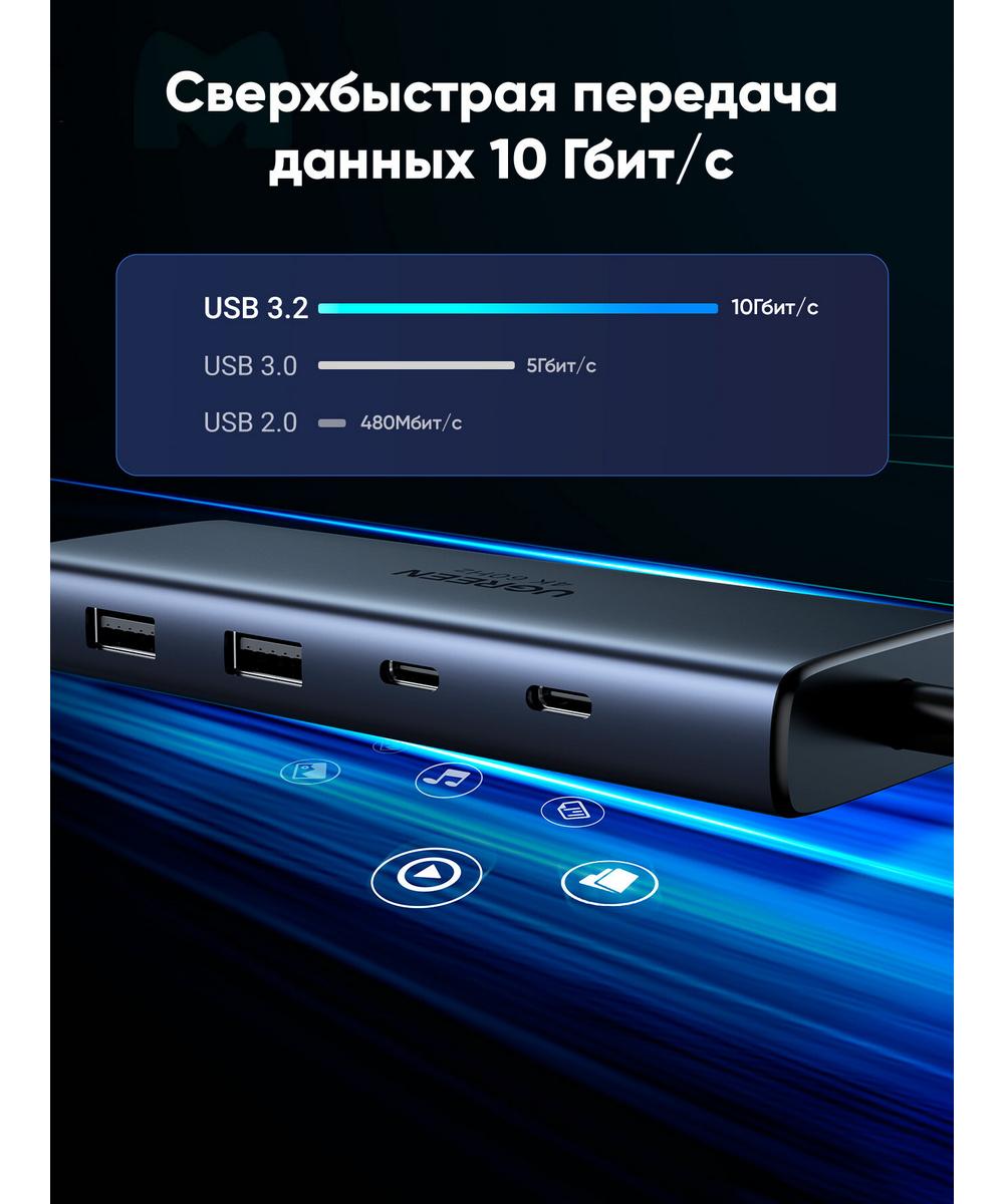 Хаб UGREEN 45379 7-в-1 — это мощная и универсальная док-станция, которая значительно расширяет возможности вашего ноутбука с USB-C, предоставляя все необходимые порты для продуктивной работы и развлечений.