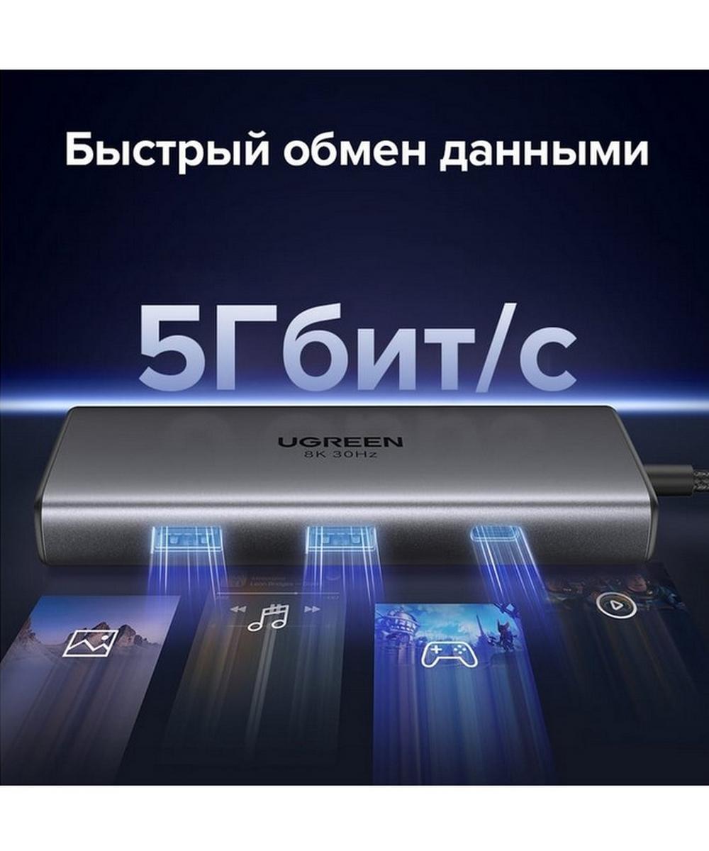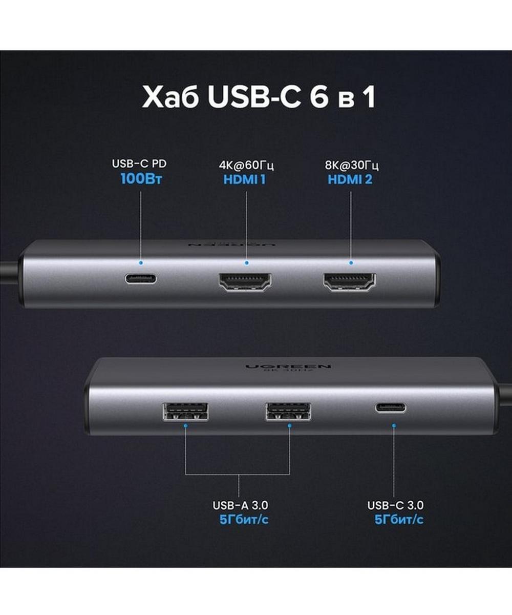 Адаптер UGREEN CM498 (15852) Revodok 6-in-1 8K@30Hz Adpter - это высококачественный USB-концентратор, который обеспечивает множество возможностей подключения.