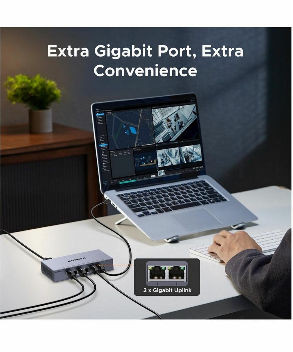 Коммутатор сетевой UGREEN CM741 (35371EU) 6-Port 4*PoE&2*Gigabit Ports Ethernet Switch