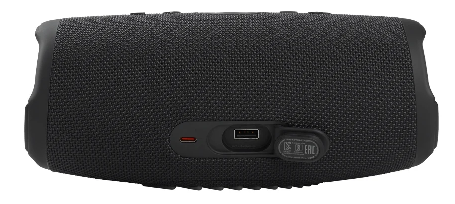 От внешних воздействий модель защищена по стандарту IP67, сохраняя полную работоспособность при падениях в воду. За автономность JBL Charge 5 отвечает аккумуляторная батарея повышенной емкости на 7500 мАч. Она обеспечивает до 20 часов непрерывного воспроизведения музыки (на среднем уровне громкости). Параллельно от батареи можно заряжать смартфон.