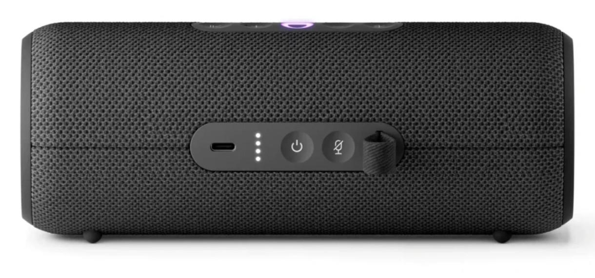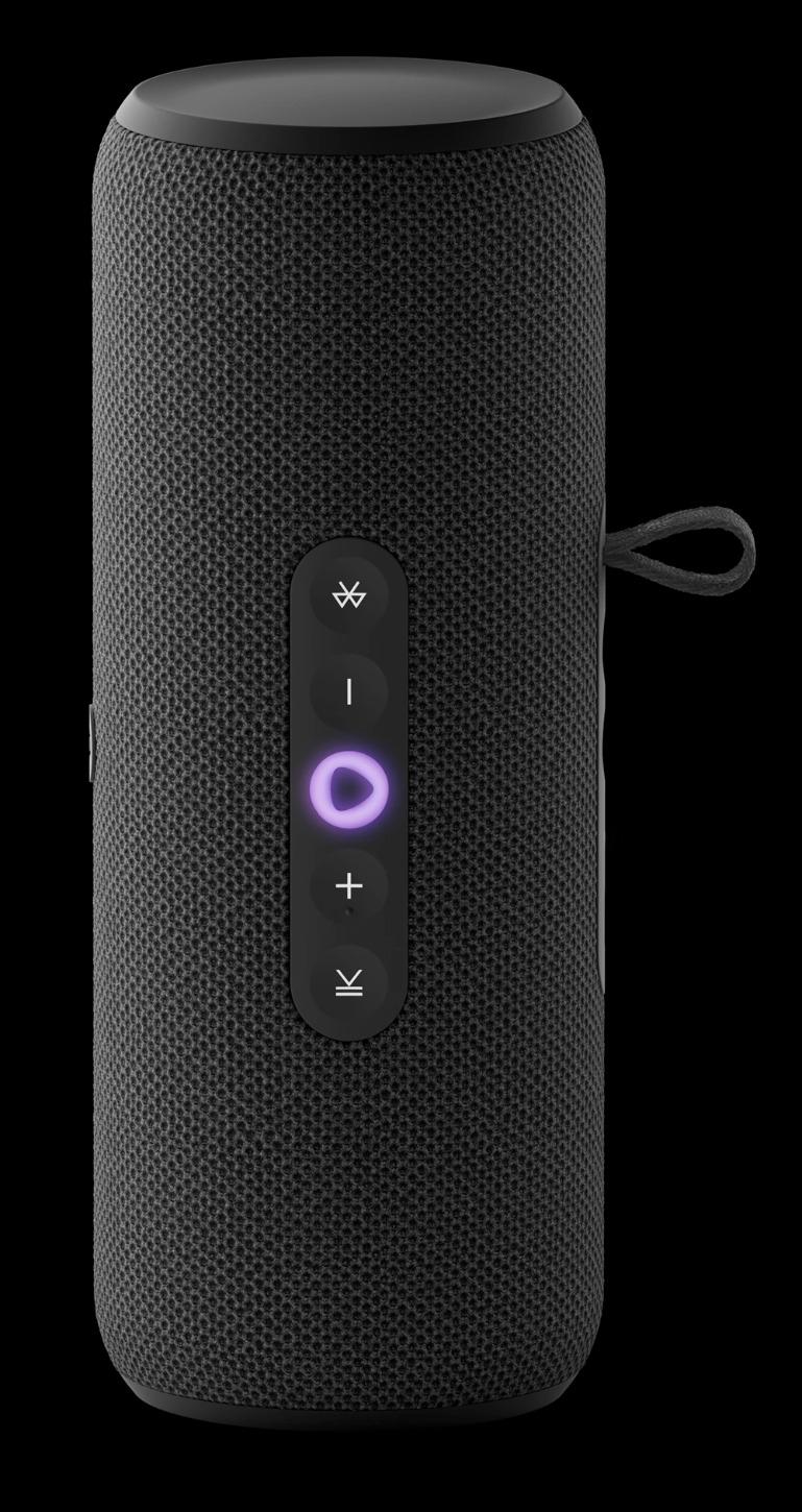 Ремешок в комплекте: Яндекс Станцию Стрит удобно держать в руке, ставить вертикально или горизонтально, а с помощью съёмного ремешка с карабином её можно вешать, куда захотите — например, на рюкзак.