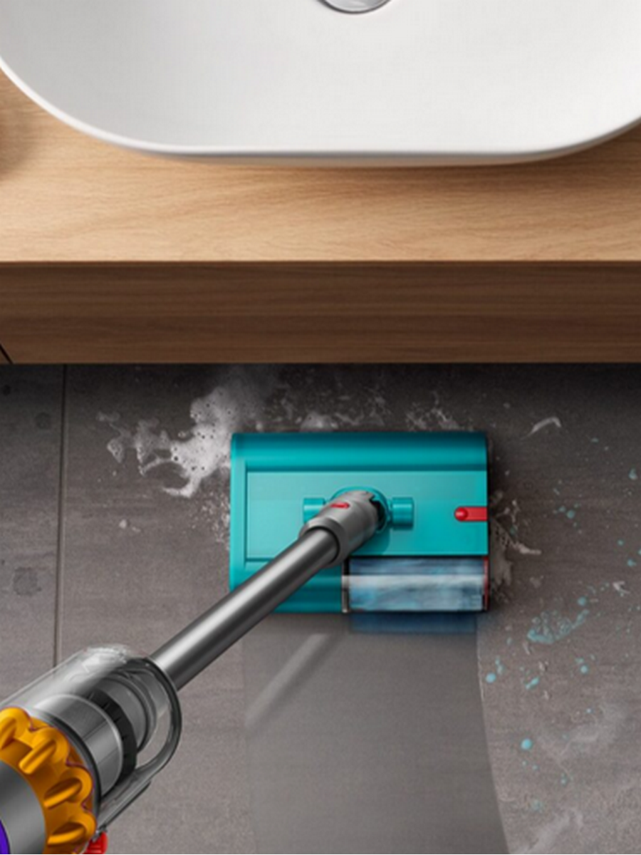 Dyson V15s Detect Submarine SV47 Yellow/Nickel EU — это беспроводной пылесос 3-в-1, который не только мощно собирает пыль, но и профессионально моет полы благодаря инновационной насадке Submarine. Это первое устройство Dyson, объединяющее сухую и влажную уборку в одной модели. Насадка Submarine оснащена двумя раздельными баками на 300 мл: из одного вода подается на увлажнение валика, а второй собирает грязную воду сразу после отжима. На полу не остается разводов и лишней влаги, что безопасно для ламината, плитки и паркета.
