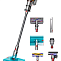 Для сухой уборки твердых покрытий используется насадка Fluffy Optic со встроенным зеленым лазером. Он подсвечивает микроскопическую пыль, невидимую обычным глазом, чтобы вы могли удалить ее полностью. Для ковров предусмотрена щетка Digital Motorbar с технологией антизапутывания: она автоматически срезает волосы и шерсть с валика, не давая им наматываться. В основе пылесоса — мощный цифровой двигатель Hyperdymium с силой всасывания до 240 аВт. Встроенный пьезодатчик анализирует состав пыли и автоматически увеличивает мощность при обнаружении загрязнений. Вся информация выводится на цветной LCD-экран на рукоятке.