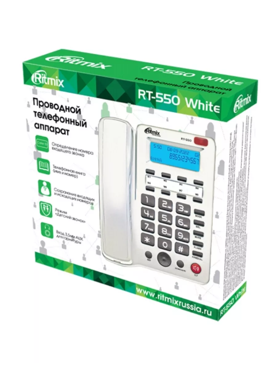 Телефонный аппарат RT-550 дает уникальную возможность подключения любой удобной для Вас гарнитуры через имеющийся в телефоне стандартный 3,5мм разъем AUX. Это позволяет использовать обычную гарнитуру во время длительных разговоров, для своего удобства и для комфорта окружающих. Обращаем Ваше внимание, что для наиболее комфортного использования телефона рекомендуется использовать гарнитуру со встроенной регулировкой громкости.