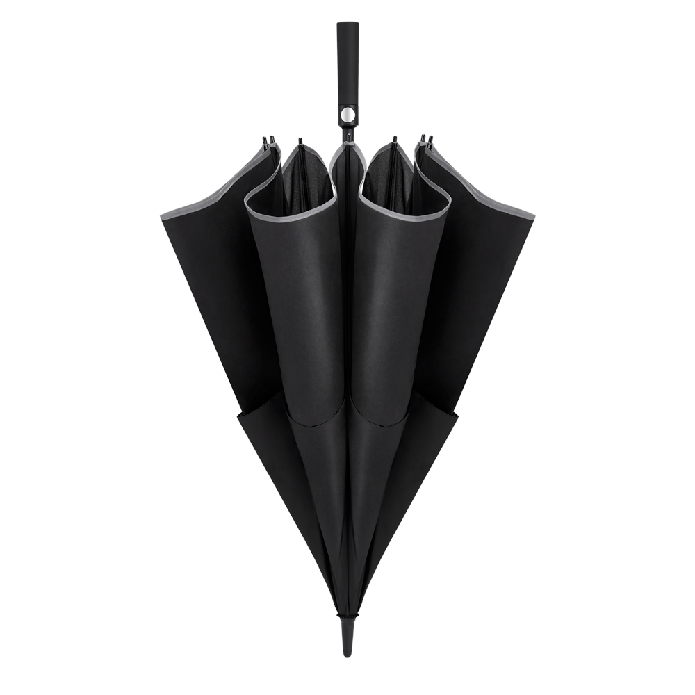 Автоматический, двухслойный, ветрозащитный зонт Double-layer Windproof Golf имеет сверхбольшой купол в 150 см. Система открывания и закрывания автоматическая — по одной кнопке. Второй слой защищает от ветра. Светоотражающая окантовка рассчитана на 360° для обеспечения вашей безопасности в дождливую тёмную ночь. Материал купола высокой плотности, защищает от брызг и быстро сохнет. Чтобы высушить зонт его достаточно просто встряхнуть. Высококачественные ребра из стекловолокна и вал из нержавеющей стали обеспечивают высокую устойчивость к порывам ветра. Хороший вариант подарка члену семьи, другу или коллеге.