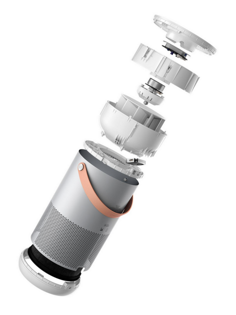Устройство оснащено HEPA-фильтром класса H13 и угольным фильтром, а также системой контроля качества воздуха с встроенными сенсорами. Индикатор качества воздуха отображает состояние с помощью цветовой индикации: зелёный, жёлтый, оранжевый и красный. Есть индикаторы включения, режима работы и загрязнения фильтра.