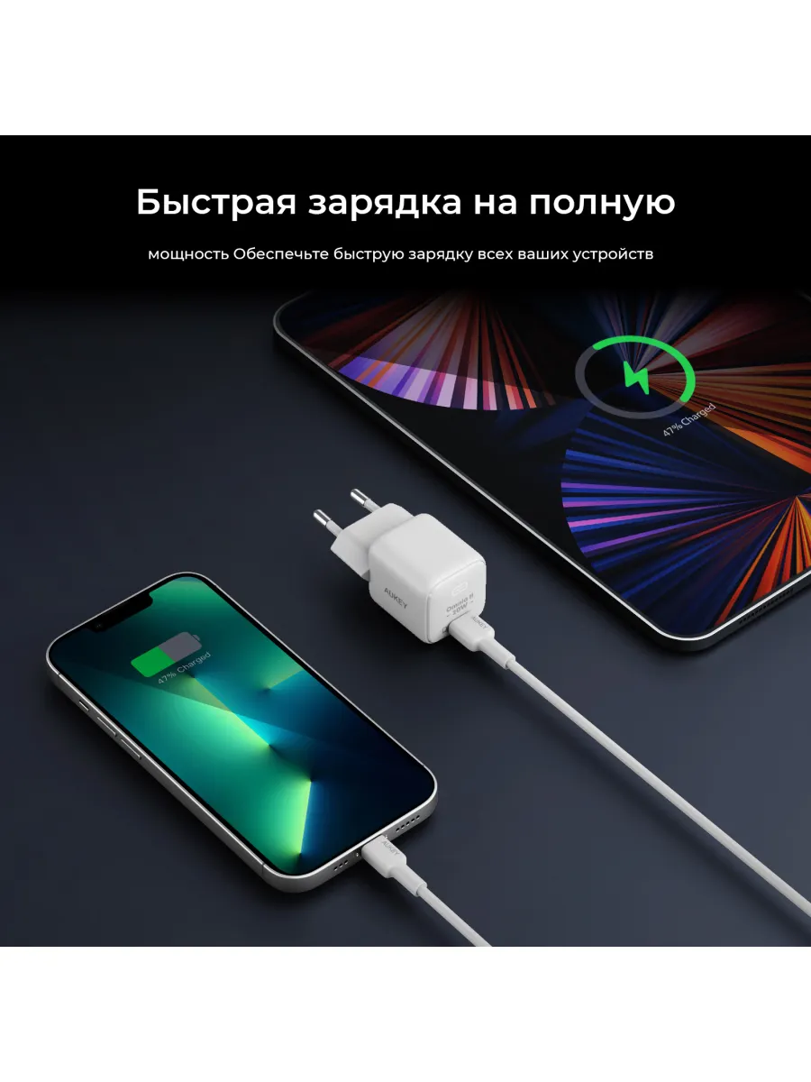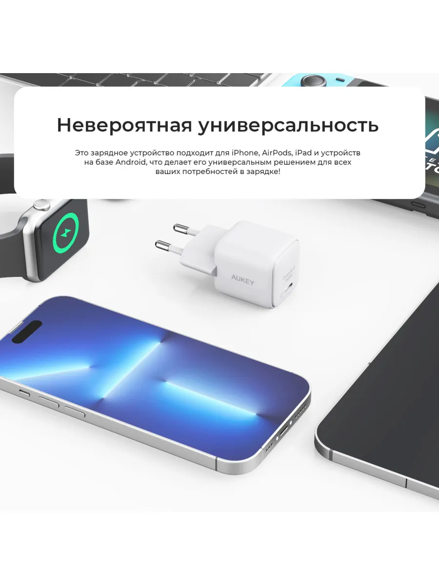 Сетевое зарядное устройство Omnia2 20W (PA-B1TW) от aukey — это компактный и мощный помощник для всех ваших устройств. Его 20-ваттная мощность обеспечивает быструю зарядку смартфонов, наушников и даже ноутбуков, экономя ваше время и позволяя вам оставаться на связи. Технология Power Delivery 3.0, Adaptive Fast Charging и Power Delivery гарантирует совместимость с широким спектром устройств и оптимальную скорость зарядки для каждого из них. Индикатор работы четко сигнализирует о статусе зарядки, а компактный дизайн позволяет удобно брать Omnia 2 с собой в поездки. Заряжайте свои устройства быстро и эффективно с Omnia2 20W — идеальным решением для современного образа жизни. Его универсальность делает его незаменимым аксессуаром как дома, так и в дороге. Забудьте о долгом ожидании, Omnia2 20W вернет вашу технику к жизни в кратчайшие сроки. Его надежность и безопасность подтверждены брендом aukey, известным своим высоким качеством. С Omnia2 20W вы всегда будете готовы к новым приключениям и онлайн-встречам.