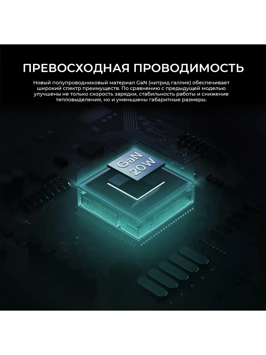 Устройство работает на базе чипа Omnia, который использует нитрид галлия (GaN), позволяющего в 3 раза ускорить зарядку и вдвое уменьшить габариты и вес.