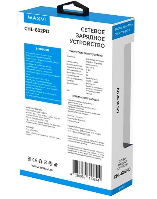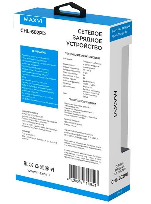 СЗУ Maxvi CHL-602PD - это универсальный сетевой адаптер с портами USB-A и USB-C, который предназначен для заряда аккумуляторов Ваших мобильных устройств от сети переменного тока. Отличительной особенностью модели является поддержка функции быстрой зарядки по технологии Quick Charge 3.0. Корпус зарядного устройства выполнен в элегантном дизайне, сочетающий в себе классику и современные технологии, а также изготовлен из огнеупорного материала.