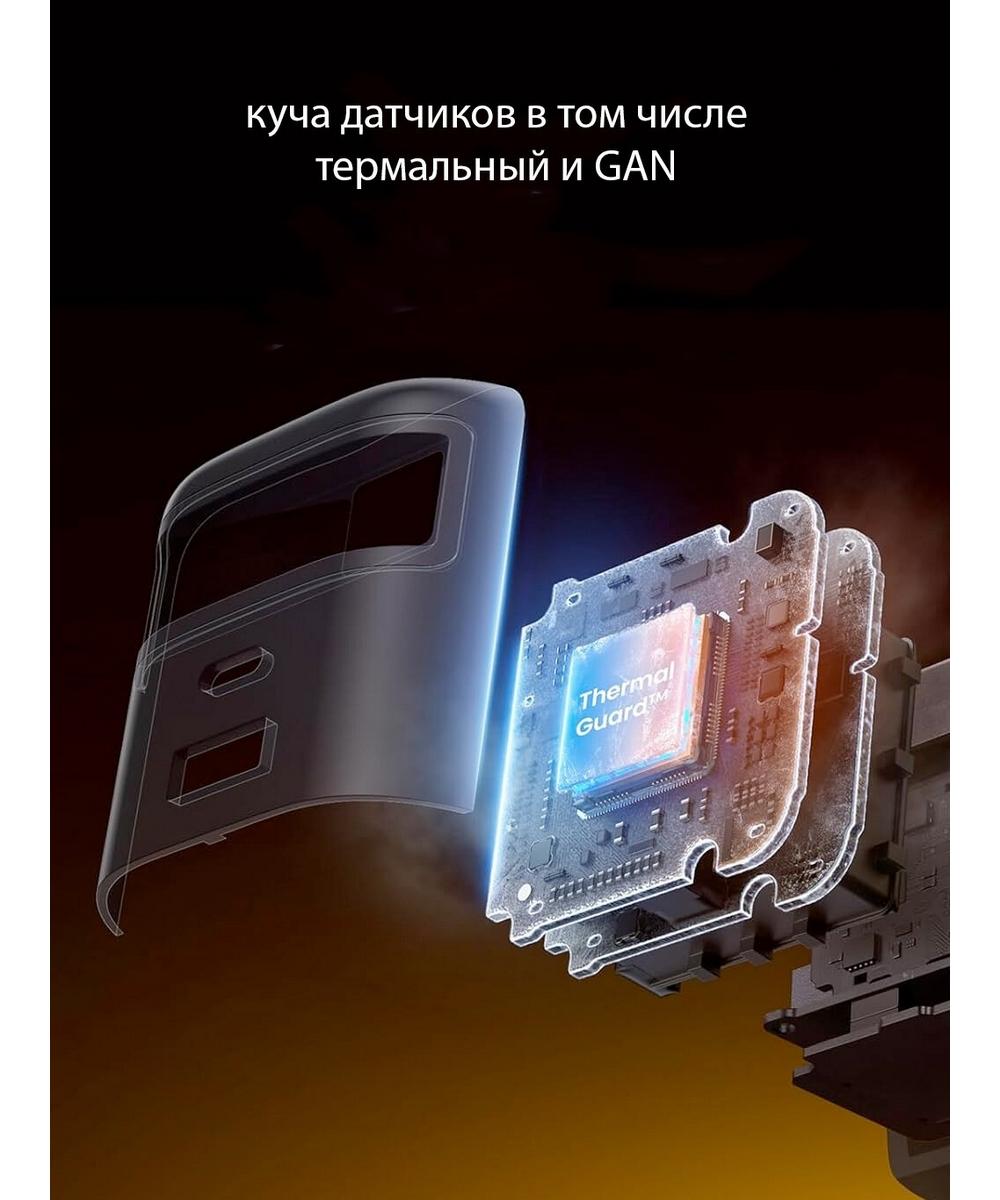Благодаря инновационной технологии GaNInfinity и системе 8-ступенчатой защиты обеспечивается до 95% эффективности преобразования энергии. Устройство остаётся компактным, почти не нагревается и гарантирует безопасную и стабильную работу.