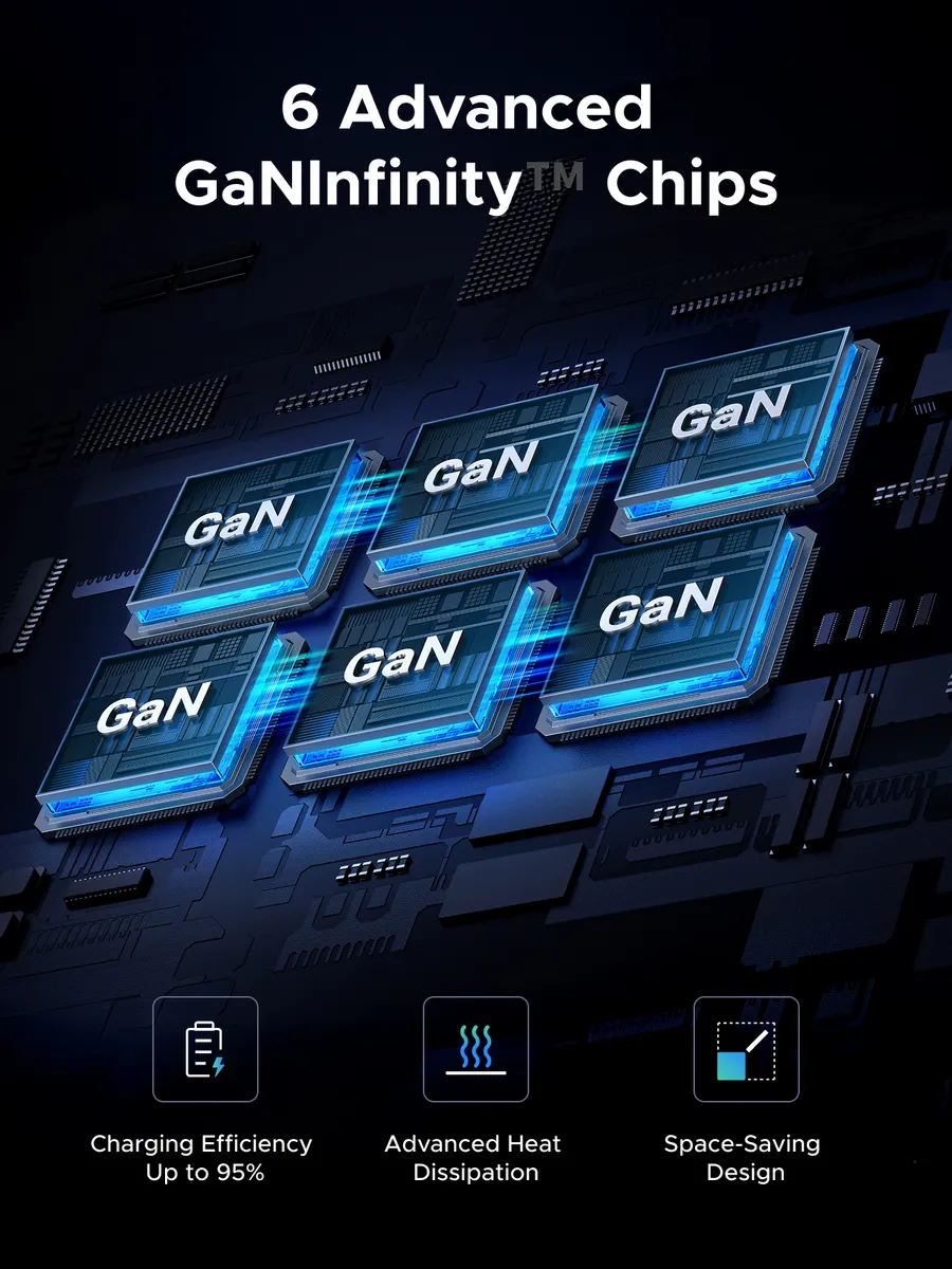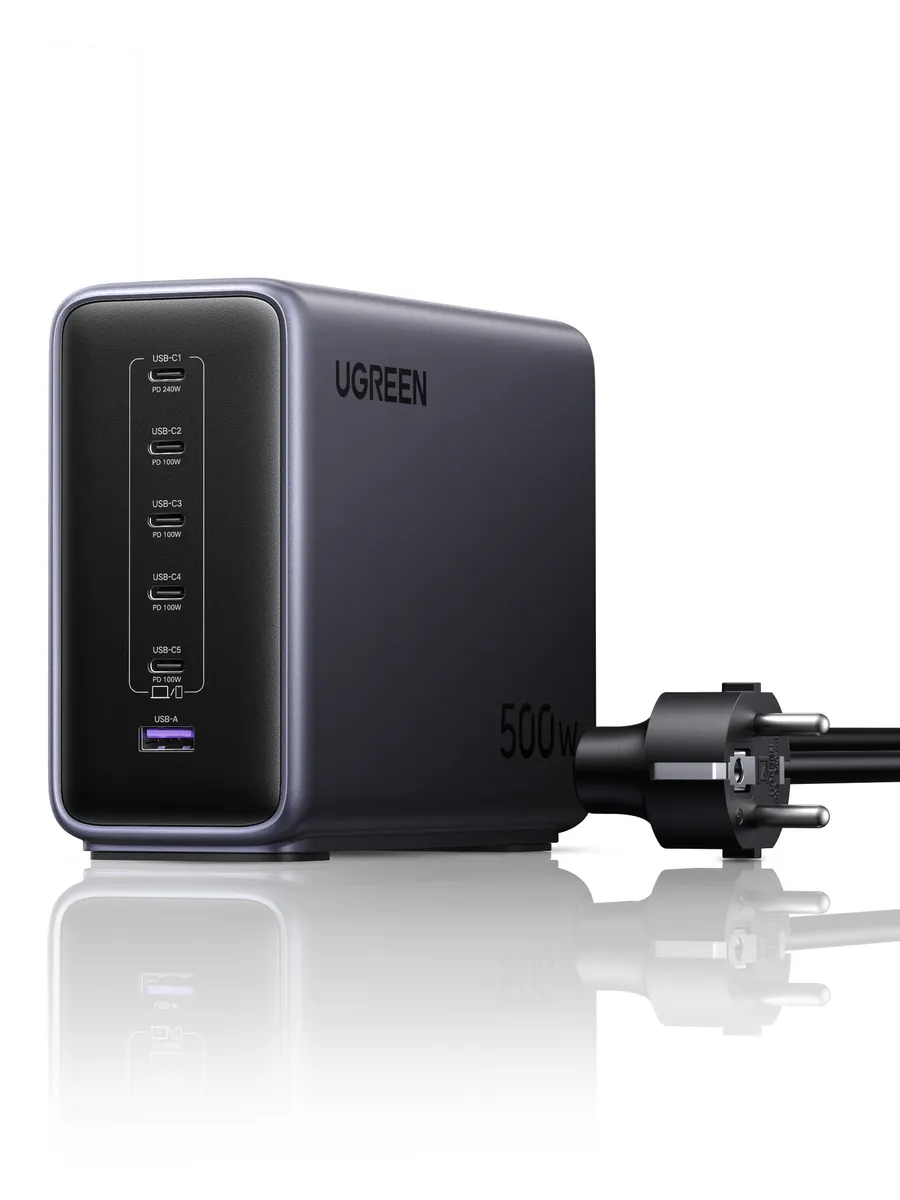 Зарядное устройство UGREEN X759 (55550B) 500W серый 6-Port 1*USB-A&5*USB-C GaN Desktop