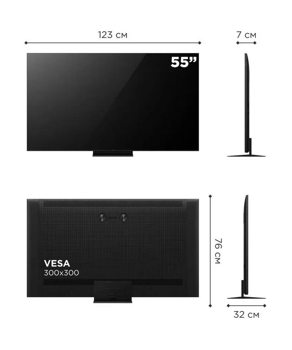 Дизайн устройства не оставит равнодушным: стильные линии и тонкая рамка идеально вписываются в любой интерьер. Подключение к интернету и поддержка различных форматов обеспечивает легкость и удобство в использовании. Благодаря множеству портов вы сможете подключить различные устройства — игровые консоли, медиаплееры или звуковые системы.