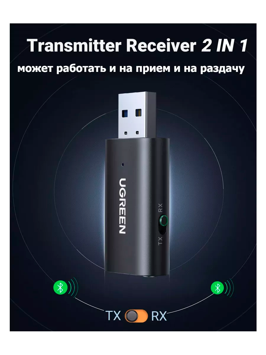 Приемопередатчик Ugreen CM523 Bluetooth 5.1 является идеальным аксессуаром для добавления беспроводной связи Bluetooth в вашу стереосистему с двойным переключателем режима передачи, позволяющим легко переключаться между функциями передатчика/приемника.