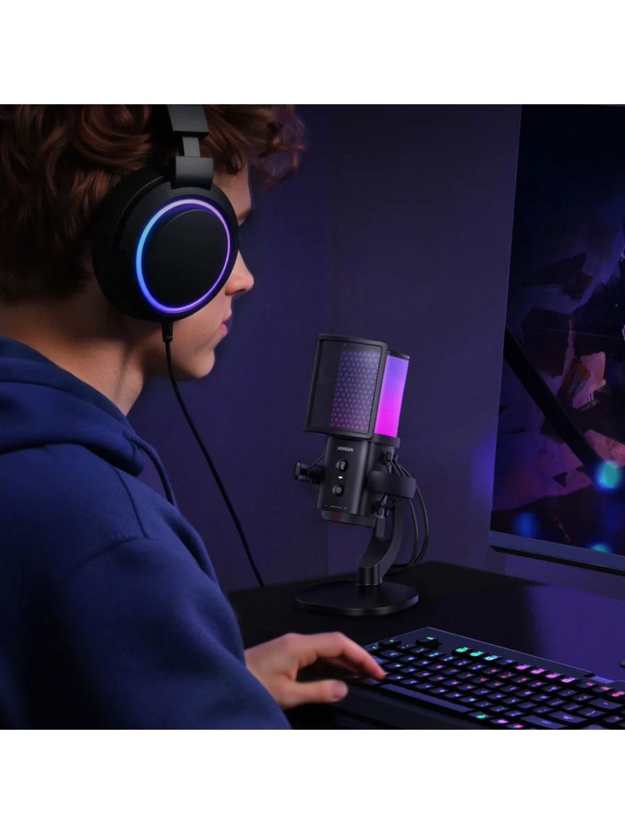 Улучшите качество звука с помощью настольного USB-микрофона UGREEN CM581, предназначенного для стримеров, создателей контента, геймеров и профессионалов, которым требуется кристально чистый звук, иммерсивное освещение и удобство подключения к интернету. Благодаря RGB-подсветке и подавлению фонового шума этот USB-микрофон придаст вашему рабочему столу стиль и производительность.