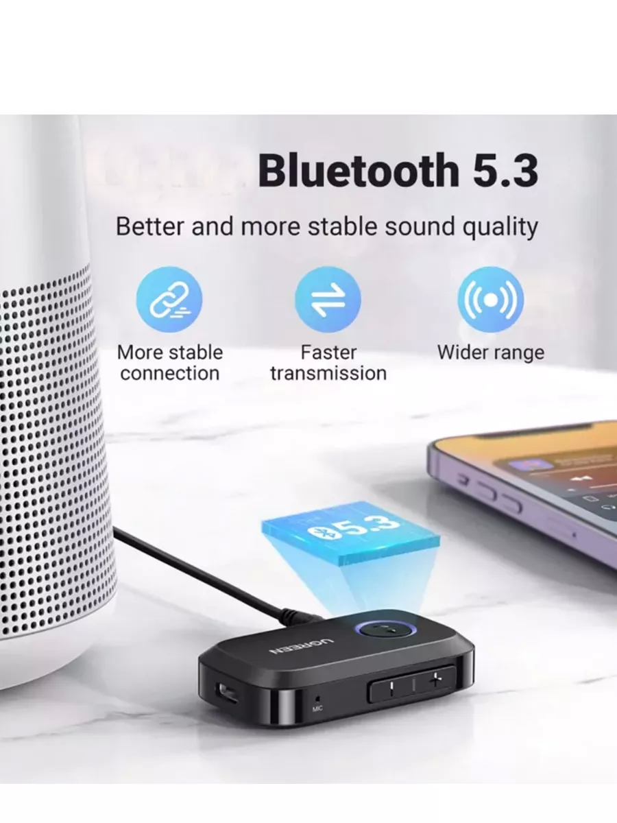 UGREEN CM596 Bluetooth 5.3 AUX Receiver - отличный инструмент, который позволяет беспроблемно подключать беспроводные устройства к тем, у которых есть только проводной вход. Благодаря последней технологии Bluetooth 5.3, CM596 обеспечивает чрезвычайно быструю и стабильную передачу звука, а также широкую совместимость с различными устройствами.