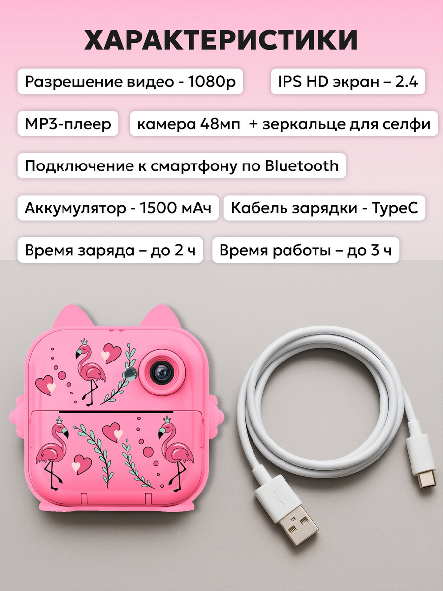 Детский фотоаппарат моментальной печати MagicCam от AIMOTO - это идеальный подарок для юных фотографов, которые хотят запечатлеть свои самые яркие моменты. Этот компактный и стильный фотоаппарат в розовом цвете "фламинго" оснащен 48-мегапиксельной основной камерой, позволяющей делать четкие и красочные снимки. MagicCam также может записывать видео в разрешении 1920x1080, что позволит запечатлеть все важные события в движении.
