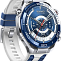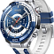 Их внешний вид сразу говорит о высоком статусе. Корпус из металла в насыщенном синем цвете сочетается с практичным и гипоаллергенным ремешком из фторэластомера белого оттенка, длина которого регулируется от 140 до 210 миллиметров для идеальной посадки на запястье. Габариты корпуса — 48,5 на 48,5 на 12,9 миллиметра — обеспечивают солидное, но комфортное присутствие на руке.